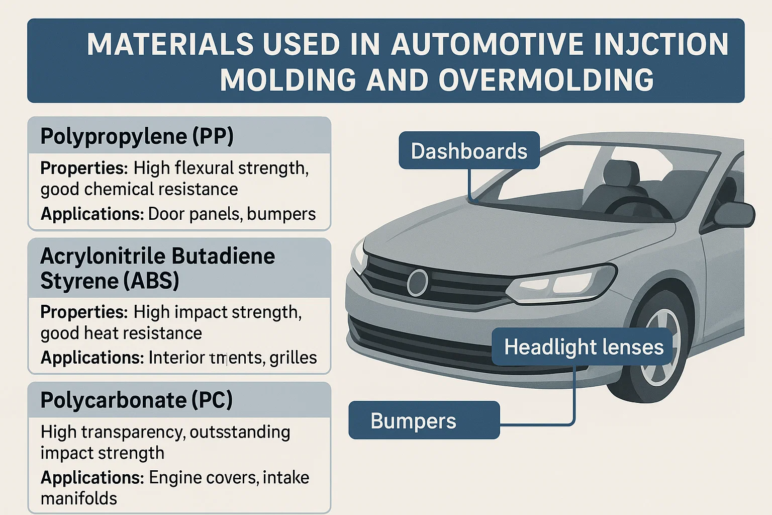 Mga materyales na ginamit sa paghubog ng automotive injection at overmolding