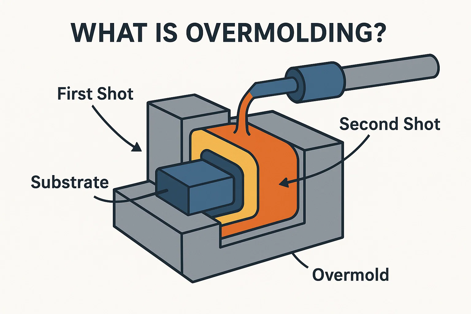 Ang overmolding ay isang dalubhasang proseso ng paghuhulma ng iniksyon na tumatagal ng konsepto ng mga bahagi ng multi-material nang higit pa. Ito ay nagsasangkot ng paghubog ng isang materyal-partikular na isang malambot, nababaluktot na thermoplastic-sa isang pre-umiiral na bahagi o substrate, na karaniwang isang mahigpit na plastik o metal. Lumilikha ito ng isang solong, pinagsamang sangkap na may pinagsamang mga katangian ng parehong mga materyales.