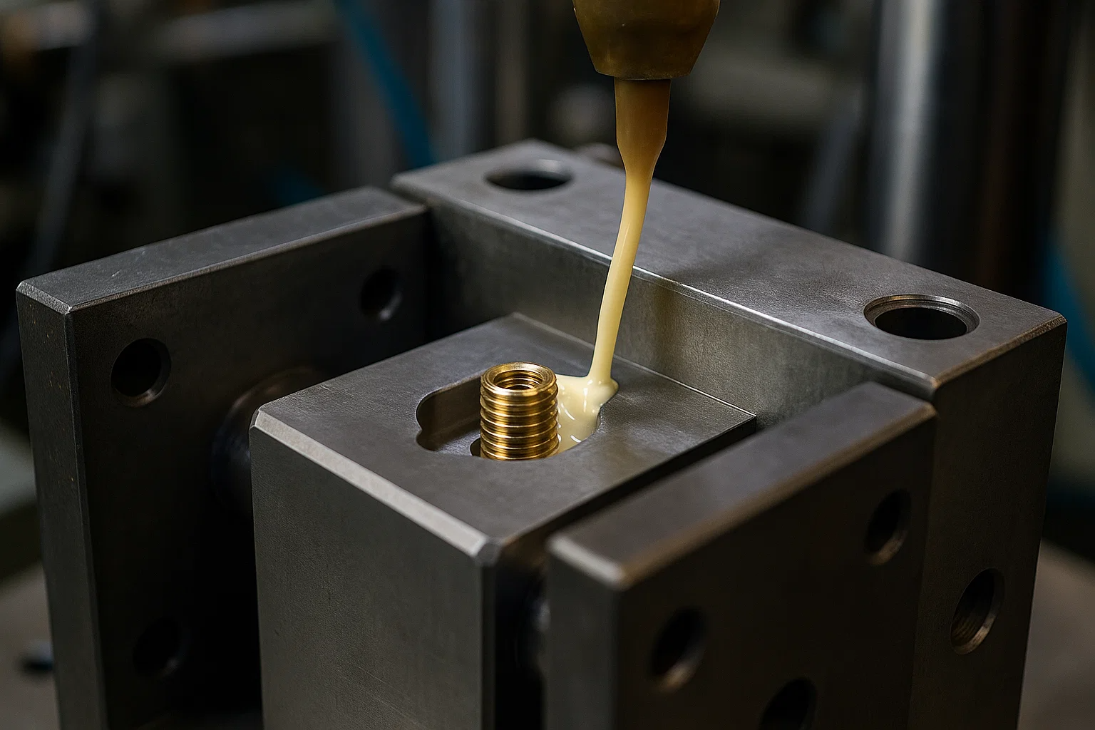 Injection ng Materyal: Ang tinunaw na plastik (thermoplastic o thermoset) ay na -injected sa ilalim ng mataas na presyon sa lukab ng amag, na dumadaloy sa paligid at nakapaloob sa mga pagsingit. Pinupuno ng materyal ang lahat ng mga voids, na lumilikha ng isang malakas na bono o mekanikal na lock na may insert.