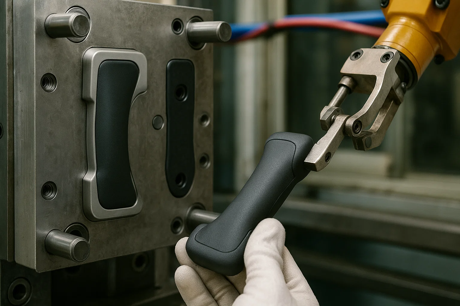 Solusyon: Ipinatupad ang tagagawa overmolding gamit ang isang two-shot injection na proseso ng paghuhulma. Una, ang istruktura na hawakan ng katawan ay hinuhubog mula sa isang matibay, matibay na plastik ng ABS. Ang mahigpit na "substrate" na ito ay pagkatapos ay pinaikot sa loob ng parehong makina ng paghubog sa isang pangalawang lukab. Dito, ang isang malambot, elastomeric thermoplastic vulcanizate (TPV) ay na-injected sa mga tiyak na lugar ng hawakan ng ABS, na bumubuo ng isang komportable, hindi slip na mahigpit na pagkakahawak.