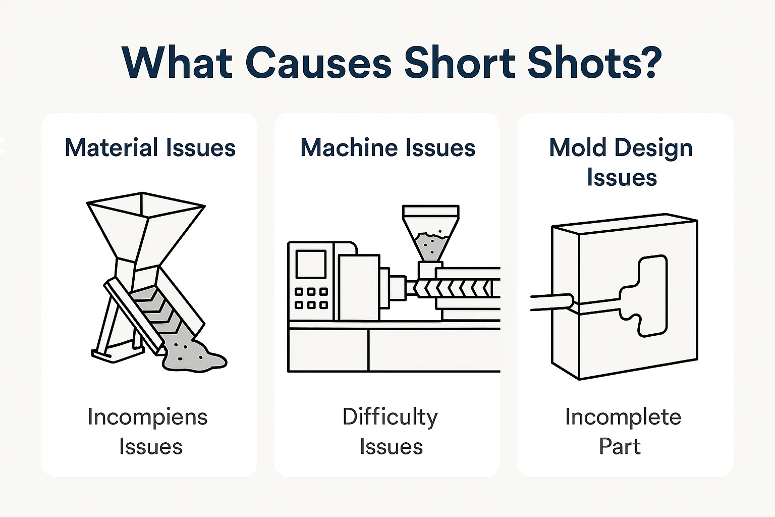 Ang pag -diagnose ng isang maikling pagbaril ay nangangailangan ng isang sistematikong diskarte, dahil ang sanhi ay maaaring magmula sa maraming iba't ibang mga lugar ng proseso ng paghubog ng iniksyon. Ang pinaka -karaniwang mga isyu ay maaaring masubaybayan pabalik sa materyal, ang mga setting ng makina, o ang disenyo ng amag mismo.